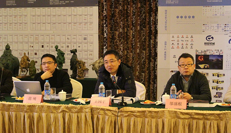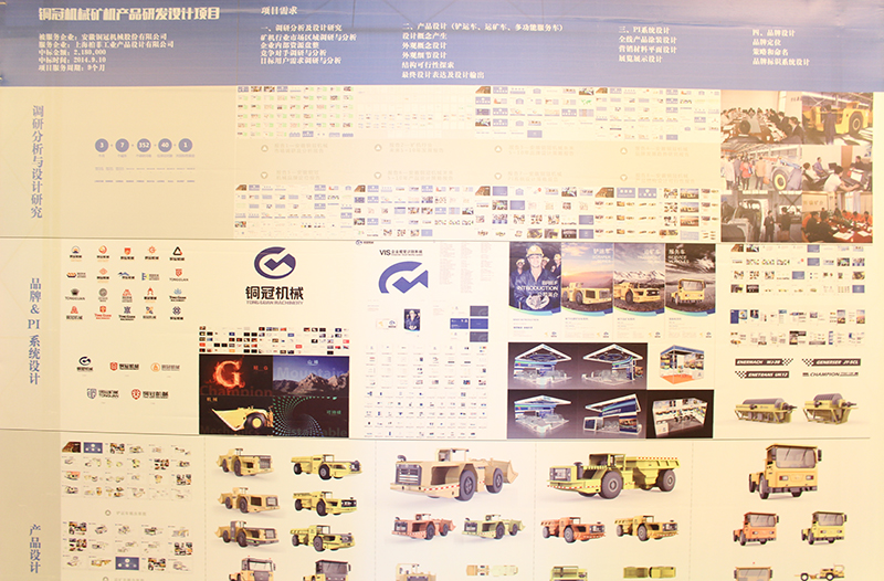評審會上,由柏菲設計總經理牛小奪匯報項目,柏菲設計從調研與分析、品牌設計、產品設計、PI系統設計、設計成果應用幾個方面為銅冠機械解決新品牌、新產品、新策略、新體驗的問題,并集中展示了八大調研分析報告,依據受眾面大,銷量大而且篩選出三款系列化產品鏟運車、運礦車、多功能服務車的產品設計方案以及具有前瞻性的品牌視覺形象策劃方案。